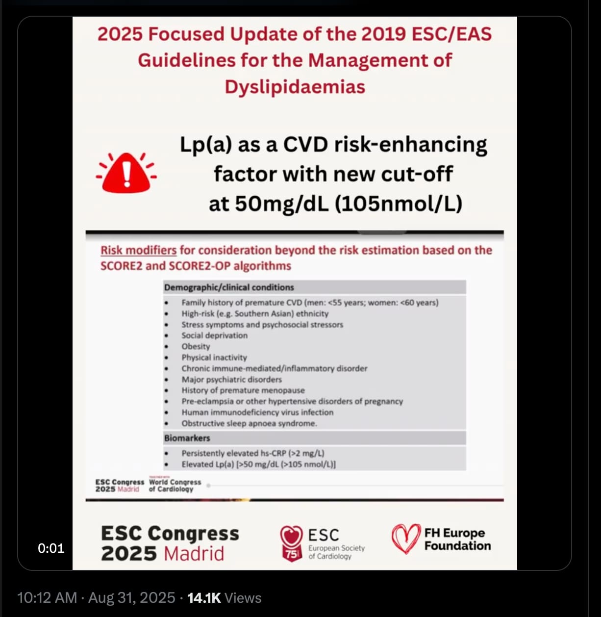 Good to have this recognition. Hopefully it means that when Lp(a)-lowering drugs hit the market, people with >50mg/dl will be able to access them through doctors, covered by social healthcare or insurance.