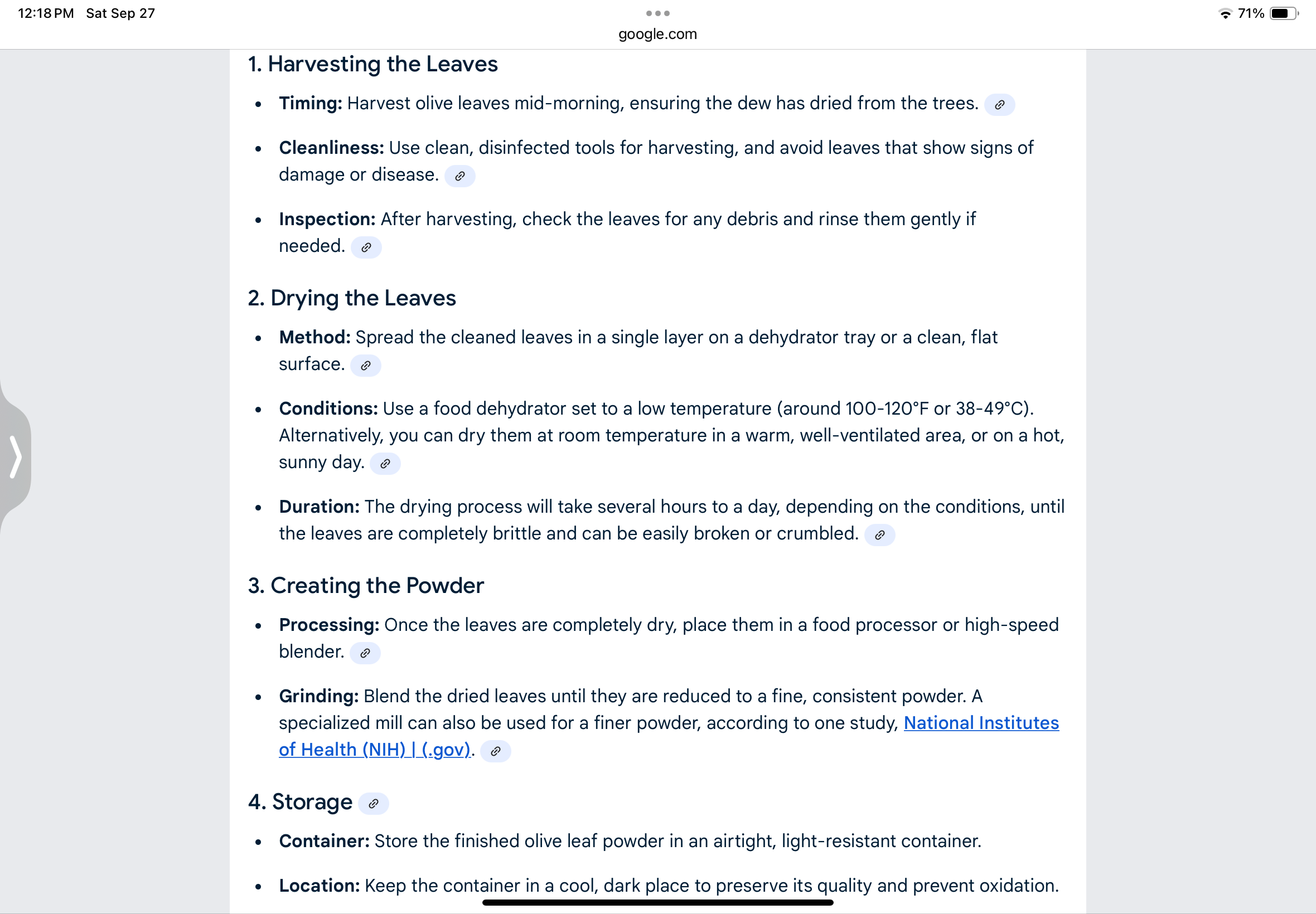 Things are easing up so I wonder how do you make olive leaf extract? Or, if convenient you could direct me to a good link/youtube vid.
